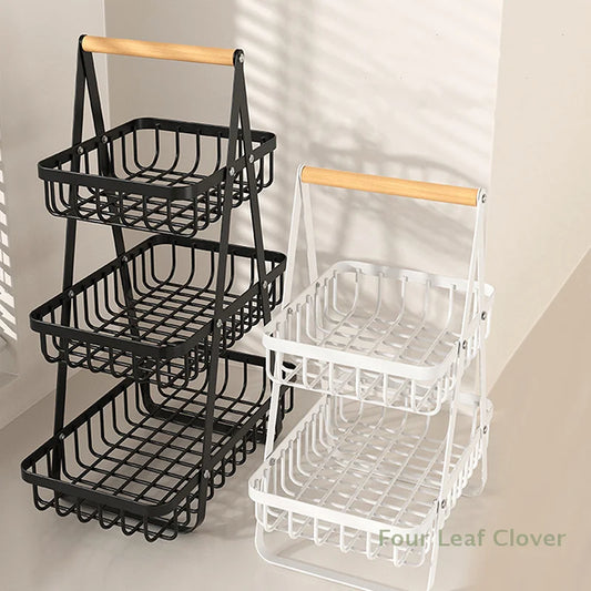 2/3-stöckiger Obstkorb für die Arbeitsplatte – Tragbarer Küchen-Organizer für Obst, Gemüse, Snacks & mehr